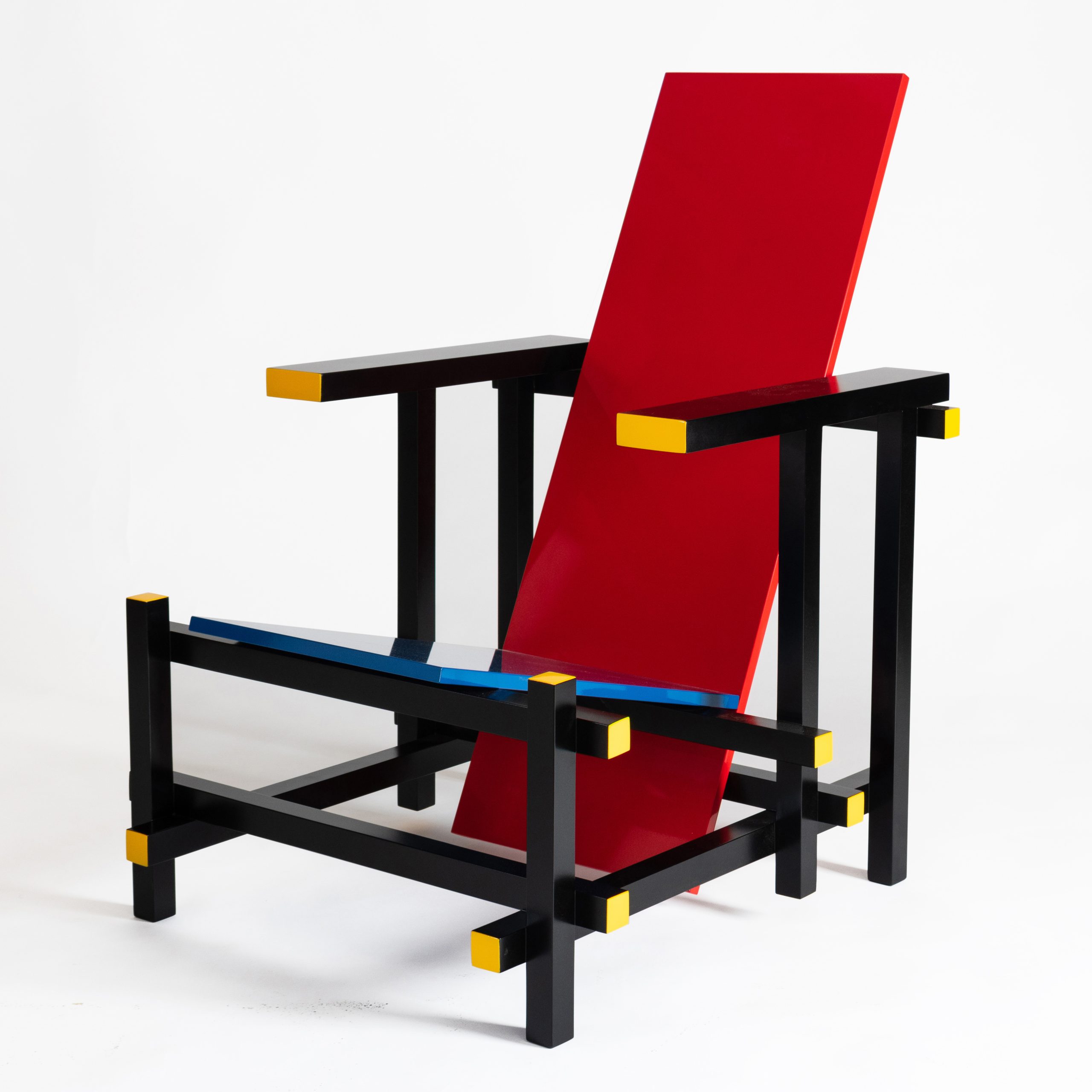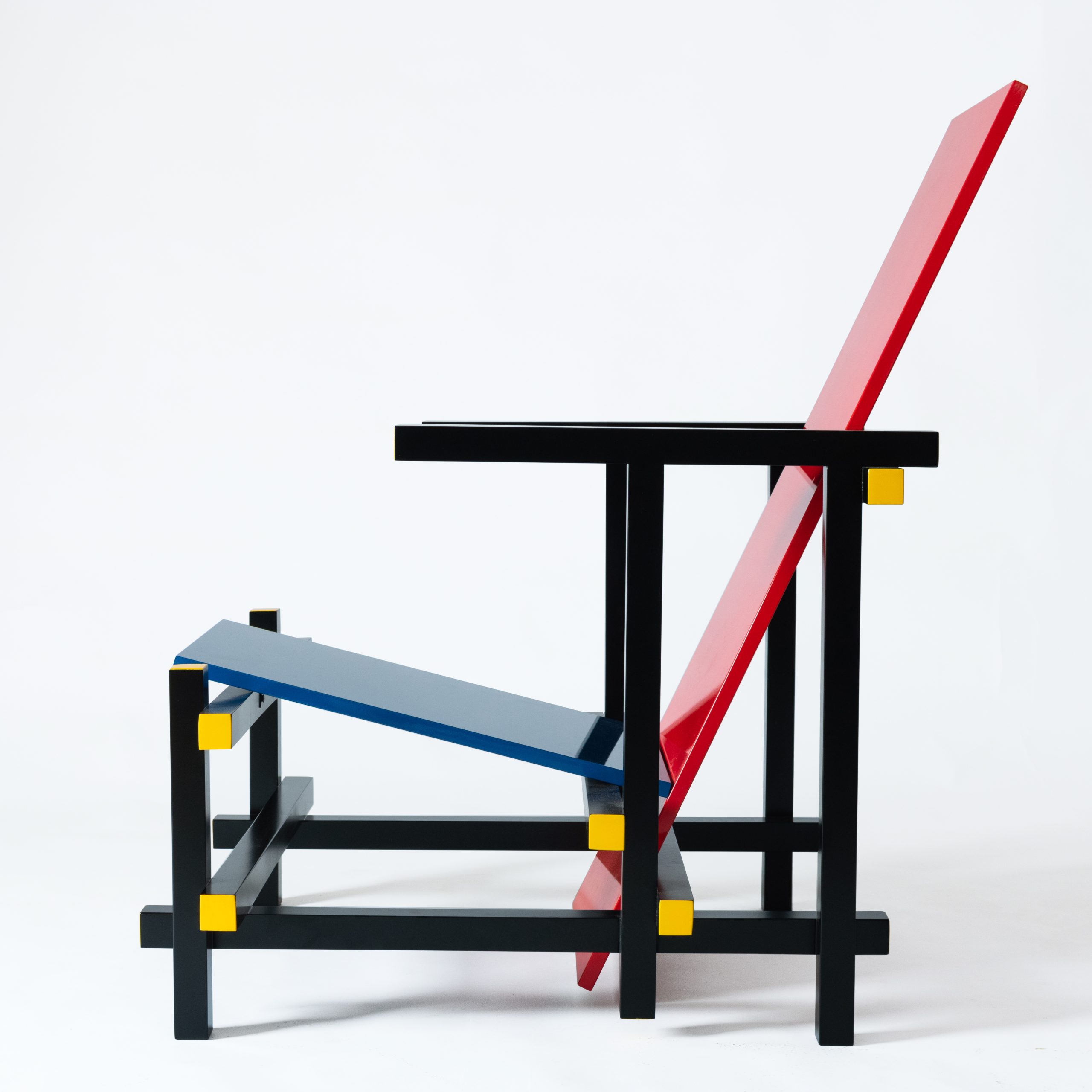 Recreación de la famosa silla «Roja y Azul», diseñada por Gerrit Rietveld en 1918.